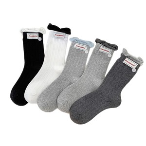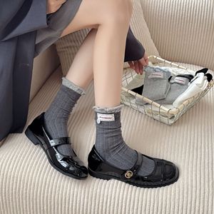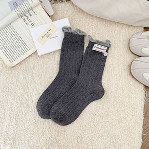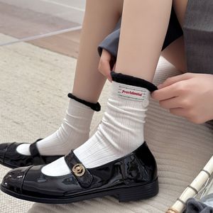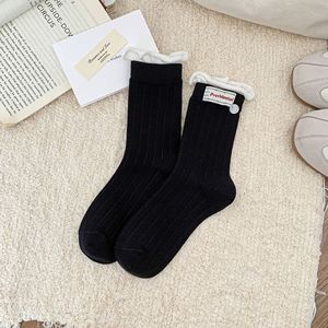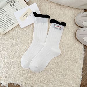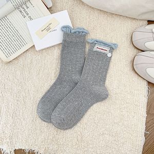 日系高奢布标纽扣配饰袜子纯棉女学院风卷边双罗口撞色堆堆袜批发