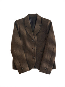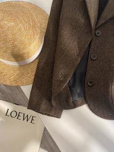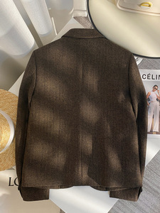 咖啡色人字纹毛呢西装外套女高级设计感小众炸街气质小西服A6733