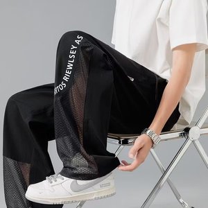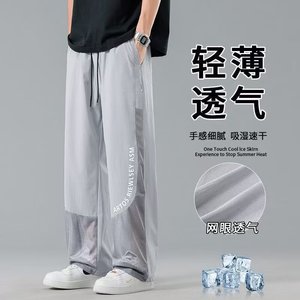 男裤夏薄款网眼凉感冰丝夏季薄款速干运动宽松大码垂感休闲西裤子