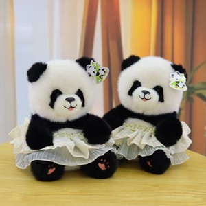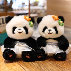 成都纪念品熊猫玩偶毛绒玩具趴款花朵裙玩偶熊猫背水果款