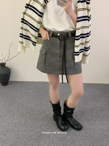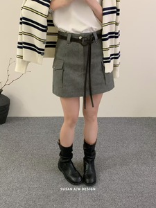 苏珊 韩版双口袋工装a字短裙女2025早秋高腰遮胯显瘦半身裙25075