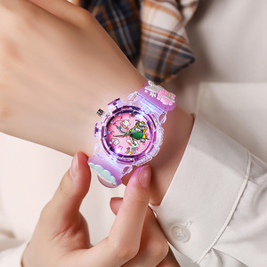 儿童手表卡通发光库洛米手表夜光女生款中小学生数字指针石英表