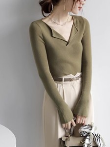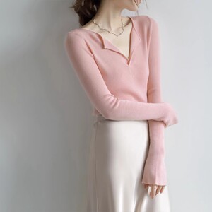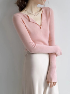 红色v领新年圣诞针织打底衫女秋冬新款保暖内搭纯欲风长袖毛衣