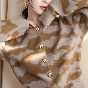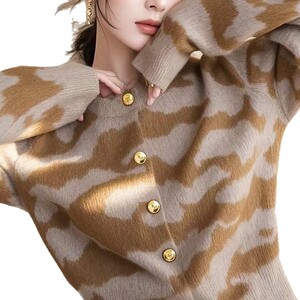 豹纹针织开衫外搭女2025秋冬新款宽松韩系慵懒高级感软糯毛衣外套