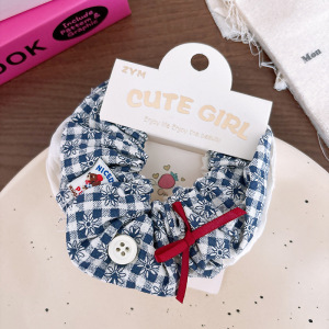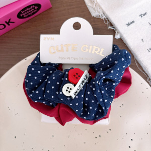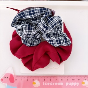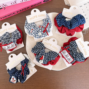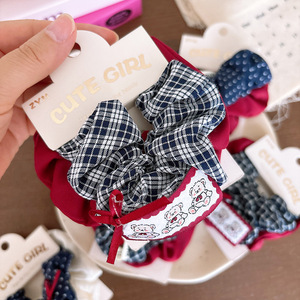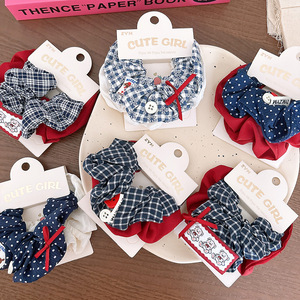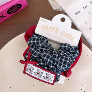 文艺复古藏青格子布艺大肠发圈女孩百搭丸子头肠圈发圈少女发饰