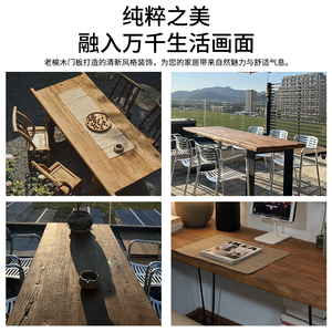 老榆木大板桌风化大板复古茶桌家用原木桌面实木做旧风老门板
