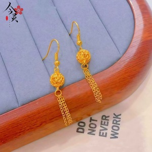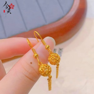 金店同款复古镂空灯笼耳环女款铜镀金新中式绣球流苏耳坠气质耳饰