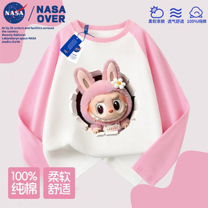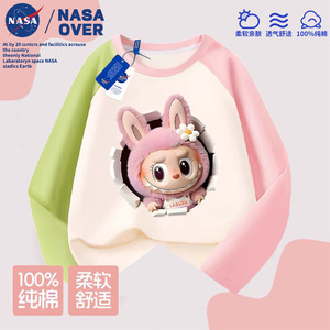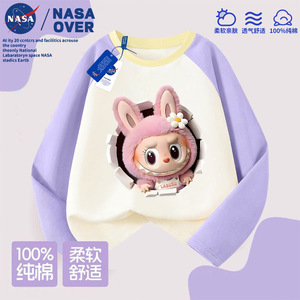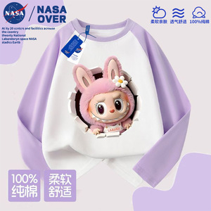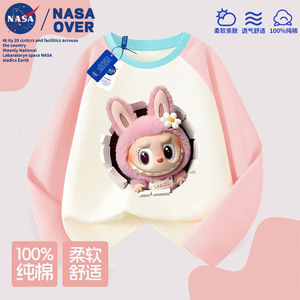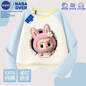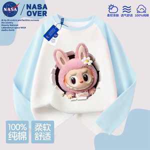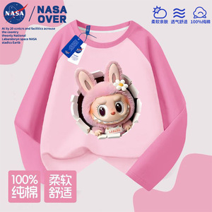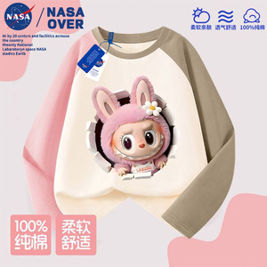 NASA儿童拉布布可爱卡通图案纯棉插肩长袖t恤秋季新款中大童上衣