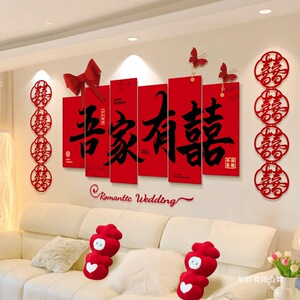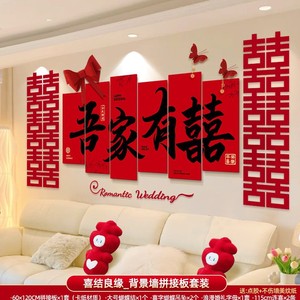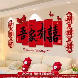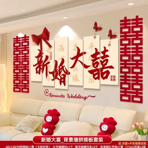婚房布置套装男方女方新房卧室客厅背景墙砖石喜字墙贴婚庆用品