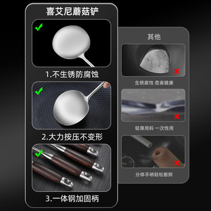 蘑菇铲316不锈钢锅铲食品级家用炒菜铲子木柄把加厚铁铲炒勺