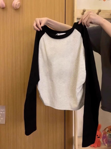 2025早秋新款秋冬季插肩纯棉长袖T恤女装内搭打底衫修身显瘦上衣