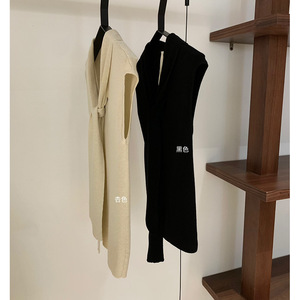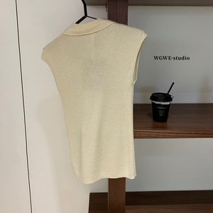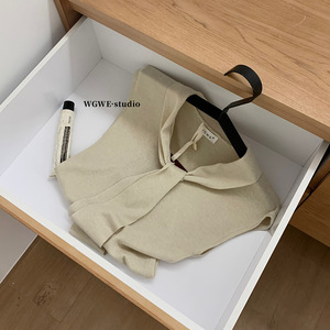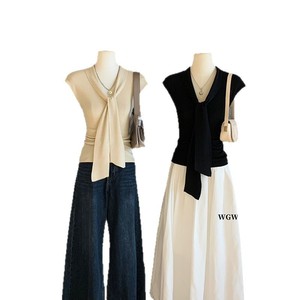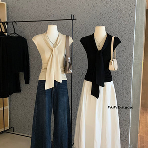 WGWE7092法式飘带短袖针织衫设计感修身显瘦绵羊毛上衣