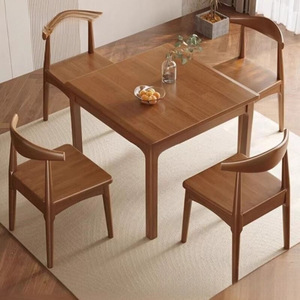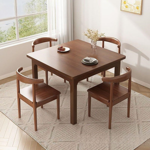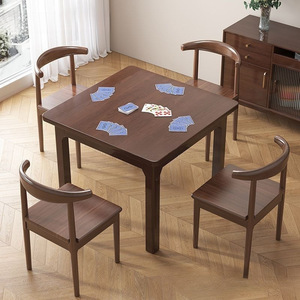 实木腿四方桌棋牌桌手搓麻将桌打牌胡桃木色掼蛋桌子餐桌家用
