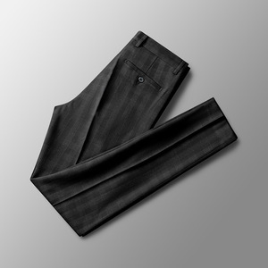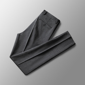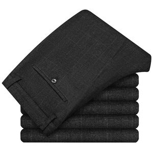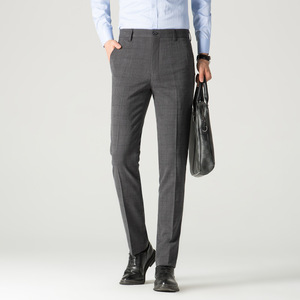 男式休闲裤2025秋冬直筒版格纹中腰西装裤中青年弹力免烫商务长裤
