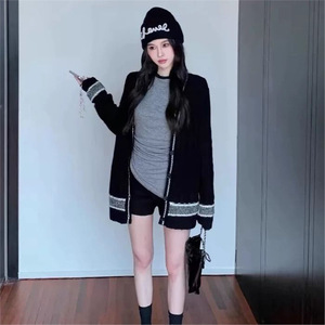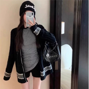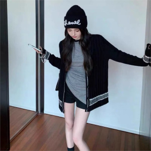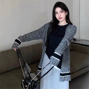 复古撞色慵懒风软毛衣新款外套小众气质宽松长袖显瘦针织开衫上衣
