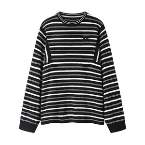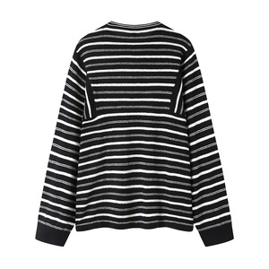 现货2025秋新款简约风宽松撞色条纹针织衫毛衣2J3E409
