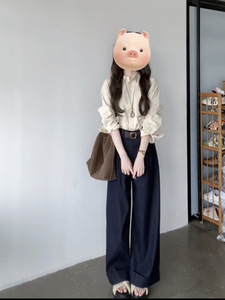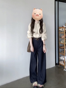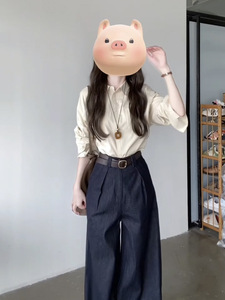 巨好看的夏装一整套韩系穿搭配气质衬衫阔腿牛仔裤两件套装女