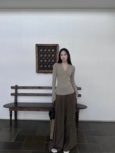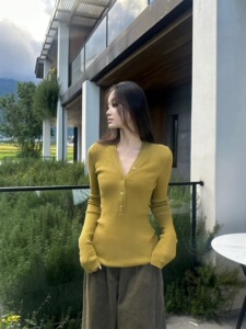 5werkwen 双门襟设计多色打底 四色 2/45支6mie羊毛纽扣上衣春夏