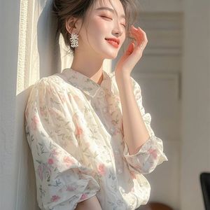 法式超好看漂亮白色碎花POLO领衬衫女2025年春秋新款漂亮小衫