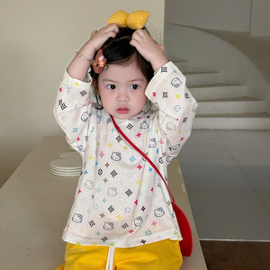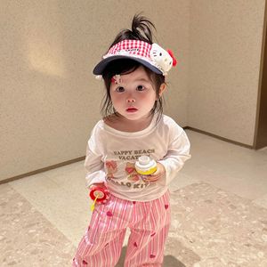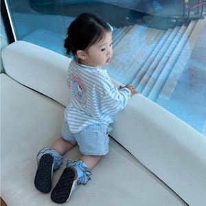 韩版童装女童秋季长袖T恤2025宝宝初秋新款可爱条纹kt印花打底衫