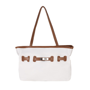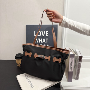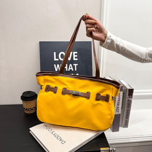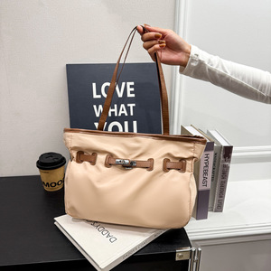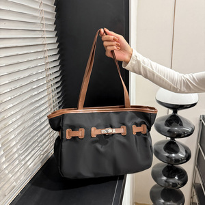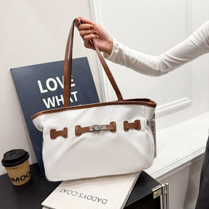 2025秋季新款超火百搭撞色韩系风格单肩斜挎包大容量女纯色托特包