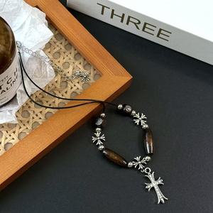 甜美少女风松针十字架手工编织可调节长项链小众设计时尚毛衣链潮