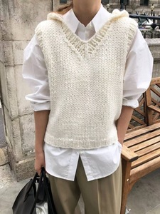 现韩国东大门overt*ke羊毛连帽针织马甲韩系女装手工编织重工背心