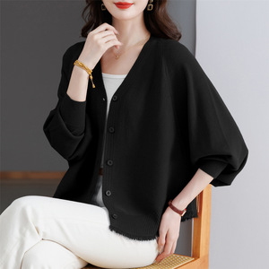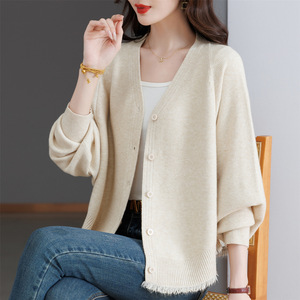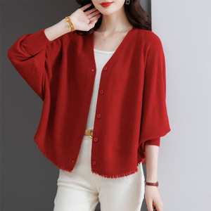 流苏蝙蝠袖针织开衫宽松2025新款大码外搭休闲春秋短款毛衣外套女