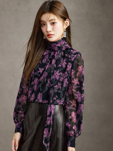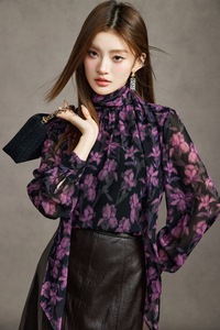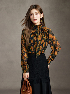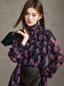 25秋季复古碎花新款上衣长袖衬衫印花衬衣气质秋款