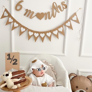 跨境ins风牛皮纸字母2/1半岁字母6月生日派对装饰旗宝宝周岁拍照