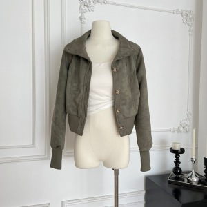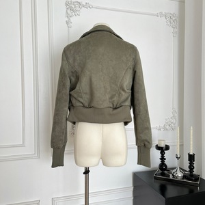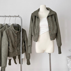 Q3856轻奢原创短款立领麂皮质感夹克女秋新品收腰显瘦设计感外套