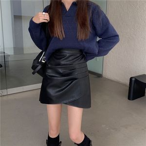 设计感褶皱包臀皮裙半身裙女秋冬季新款微胖穿搭大码高腰a字短裙