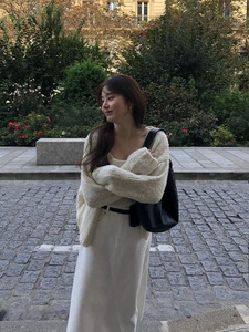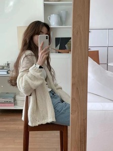 现货2025秋季新款韩版OU*CE宽松气质纯色显瘦慵懒风V领针织开衫女