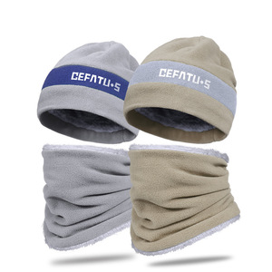 冬季保暖儿童帽子围脖套加绒加厚防风帽童帽两件套护耳绵帽亲子帽