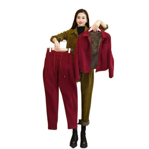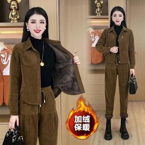 冬季加绒加厚套装女2025新款时尚洋气质宽松显瘦小个子休闲两件套