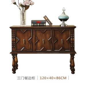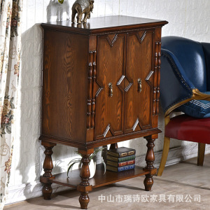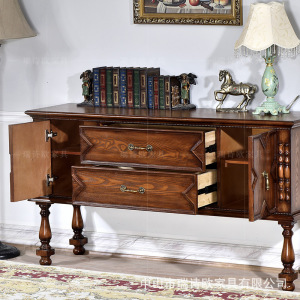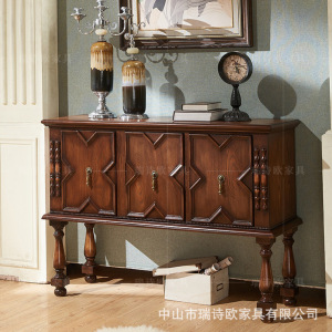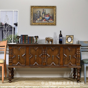 复古美式实木四门柜法式复古风餐边柜电视柜设计感玄关过道装饰柜