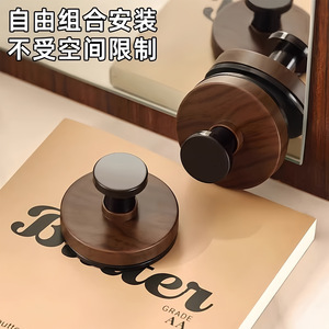 胡桃木纹吸盘旋钮挂钩门后浴室厨房壁挂式置物架免打孔挂衣钩挂架