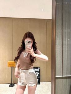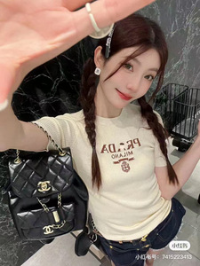 南油高定25早秋新款P家胸口提花字母坑条针织薄款修身显瘦短袖T
