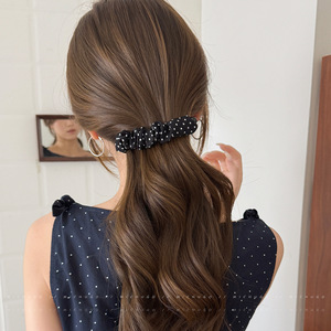 法式复古豹纹波点褶皱香蕉夹高级感马扭扭竖夹后脑勺显发量横夹发