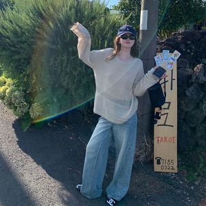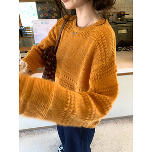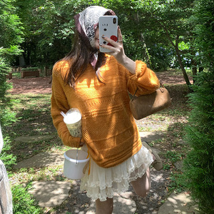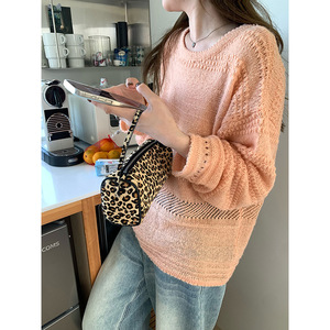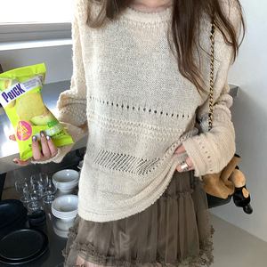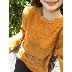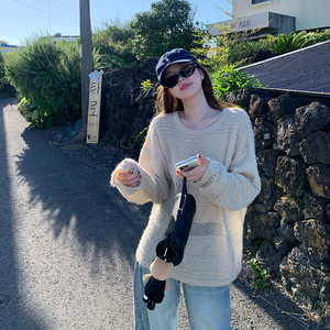慵懒风圆领套头镂空长袖针织衫罩衫韩版洋气秋季外搭薄款气质毛衣
