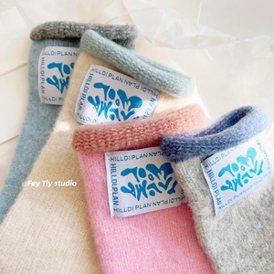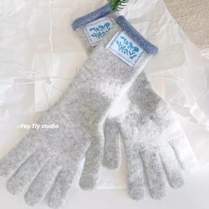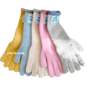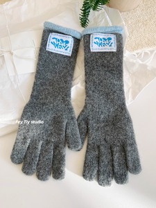 出口日韩含羊毛撞色加长手套秋冬保暖可爱可触屏百搭分指针织手套