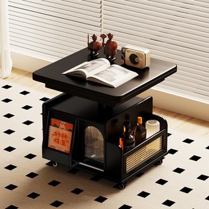 实木升降茶几移动推车茶桌折叠餐桌小户型茶台多功能客厅沙发边柜