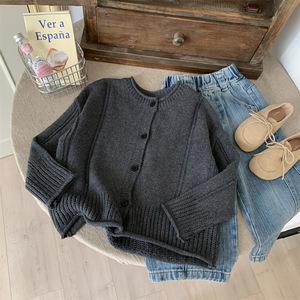 2025秋季新款儿童韩版设计款镂空毛衣外套男童卷边高级感针织开衫