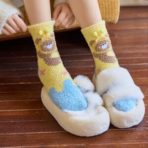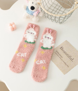 秋冬珊瑚绒袜子女卡通动物女袜居家保暖地板袜加厚睡眠月子中筒袜