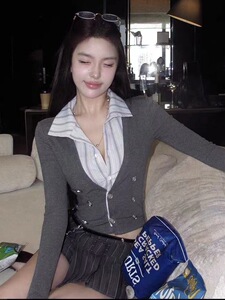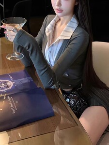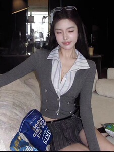 8/25 20点晚风里高智感假两件修身拼接条纹针织上衣