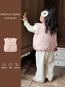 婴幼儿秋冬新款宝宝三件套轻薄羽绒马甲羽绒衣服90白鸭绒马夹外套