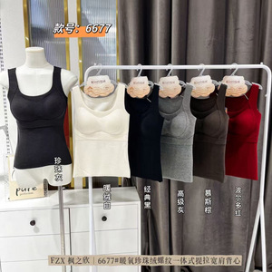 枫之欣6677暖氧珍珠绒经典纯色一体式提拉宽肩背心抗菌百搭上衣女