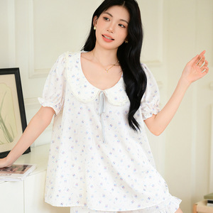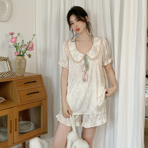 法式睡衣套装女夏季新款甜美可爱风短袖短裤家居服色丁套装可外穿