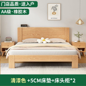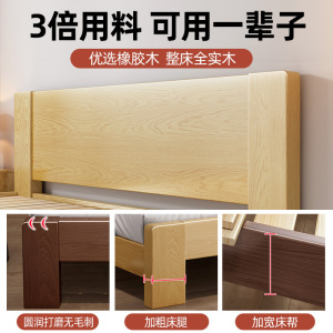 全实木床1.5米家用现代简约橡胶木1.8双人床主卧1.2m单人儿童床架