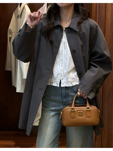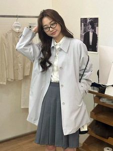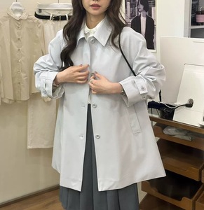 不退不换2025秋季新款韩版宽松纯色显瘦翻领单排扣中长款风衣外套